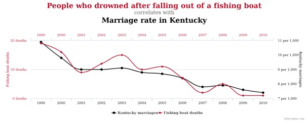 A popular phrase tossed around when we talk about statistical data is “there is correlation between variables”. However, many people wrongly consider this to be the equivalent of “there is causation between variables”. It’s important to explain the distinction: